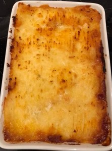 Auf die Currywurstmischung aufbringen und mit Butterflöckchen belegen. Im Backofen bei ca. 200 g backen (ca. 25 Minuten).