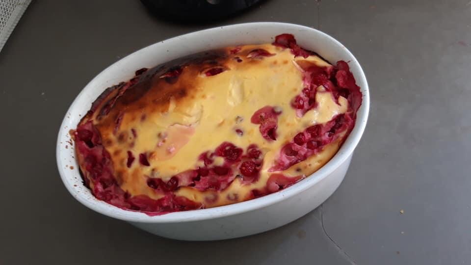 Alle Zutaten bis auf die Johannisbeeren gut verquirlen.