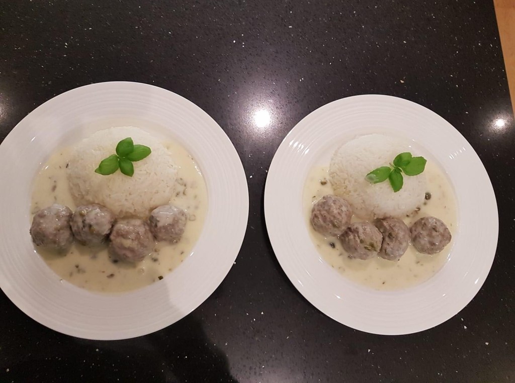 Die restliche Sahne und das Eigelb verquirlen und langsam in die Sauce rühren. Die Klöße zum Servieren in der Sauce bei schwacher Hitze ca. 5 Min. erwärmen, aber nicht mehr kochen lassen – sonst gerinnt das Eigelb.