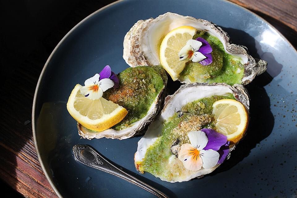 Die Masse auf die Austern geben, beherzt mit Semmelbröseln bestreuen und im Ofen bei 200 Grad 3 – 4 Minuten gratinieren.
