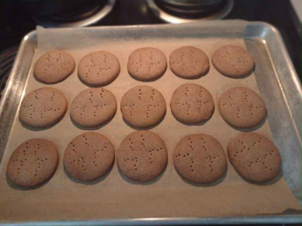5. Danach den Teig etwa 3 mm (⅛ Zoll) dick ausrollen. Mit einem runden Ausstecher nach Wunsch Kreise ausstechen und mit einer Gabel ein paar Mal einstechen.