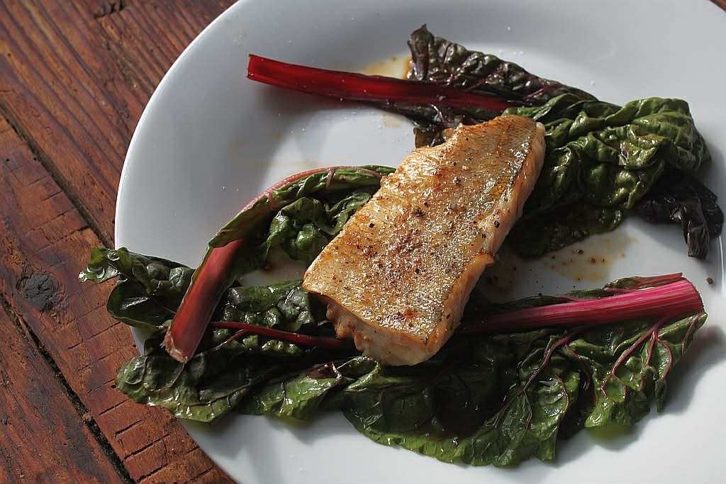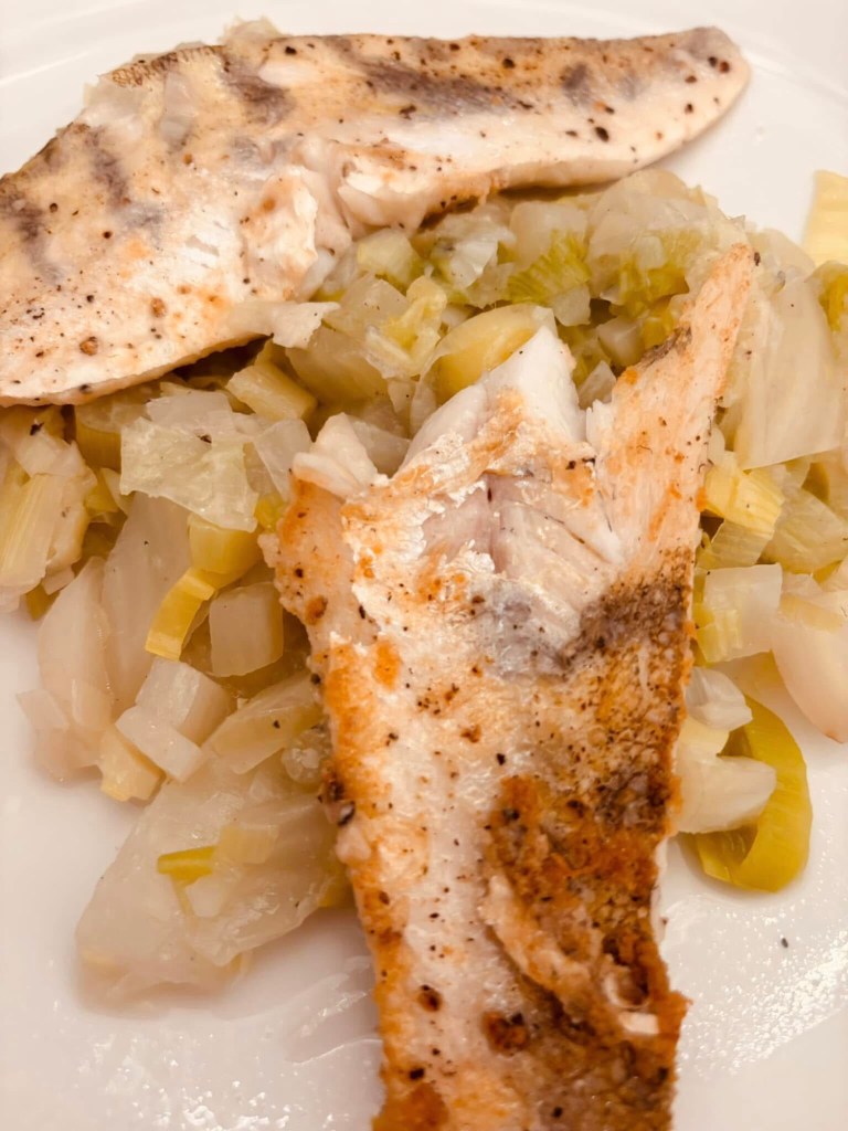 Zutaten (für 2 Portionen) • 2 Kabeljaufilets à ca. 150–180 g, mit Haut • 40 g Butter • 1 kleine Schalotte, fein gehackt • 1 Bund Mangold (ca. 300 g) • 1–2 TL Sojasauce • Salz • frisch gemahlener Kampot-Pfeffer (oder anderer schwarzer Pfeffer)