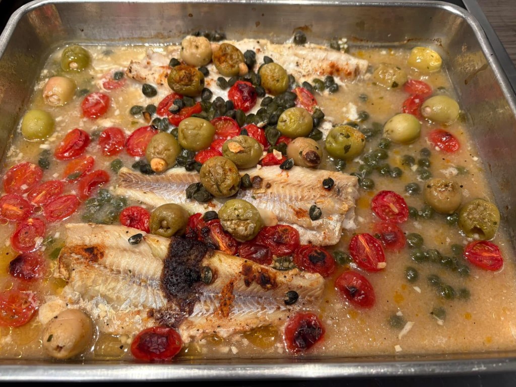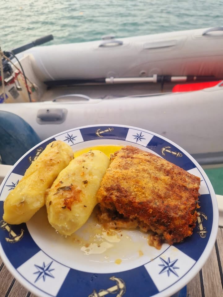 Gestern gab es selbstgemachte Schlemmerfilet mediterrane Art, vom Mahi Mahi oder auch Goldmakrele genannt. Fisch 🐟 ist hier günstig und immer frisch.