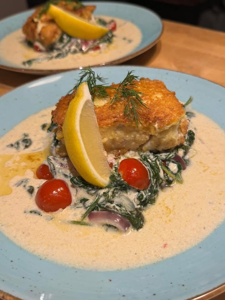 Ein feines, französisch inspiriertes Fischgericht: Kabeljau sanft in brauner Butter gegart, serviert auf aromatischem Mangold.