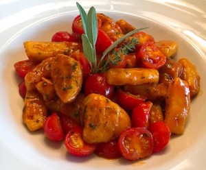 Vor dem Servieren mit Frischkäse und Schnittlauch garnieren.
