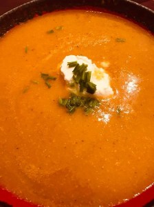 Die Zwiebeln und die Möhren klein schneiden. Zusammen mit den Linsen in wenig Öl andünsten. Anschließend mit Gemüsebrühe ablöschen und 20 Minuten köcheln. Zum Schluß alles pürieren und mit den Gewürzen abschmecken.