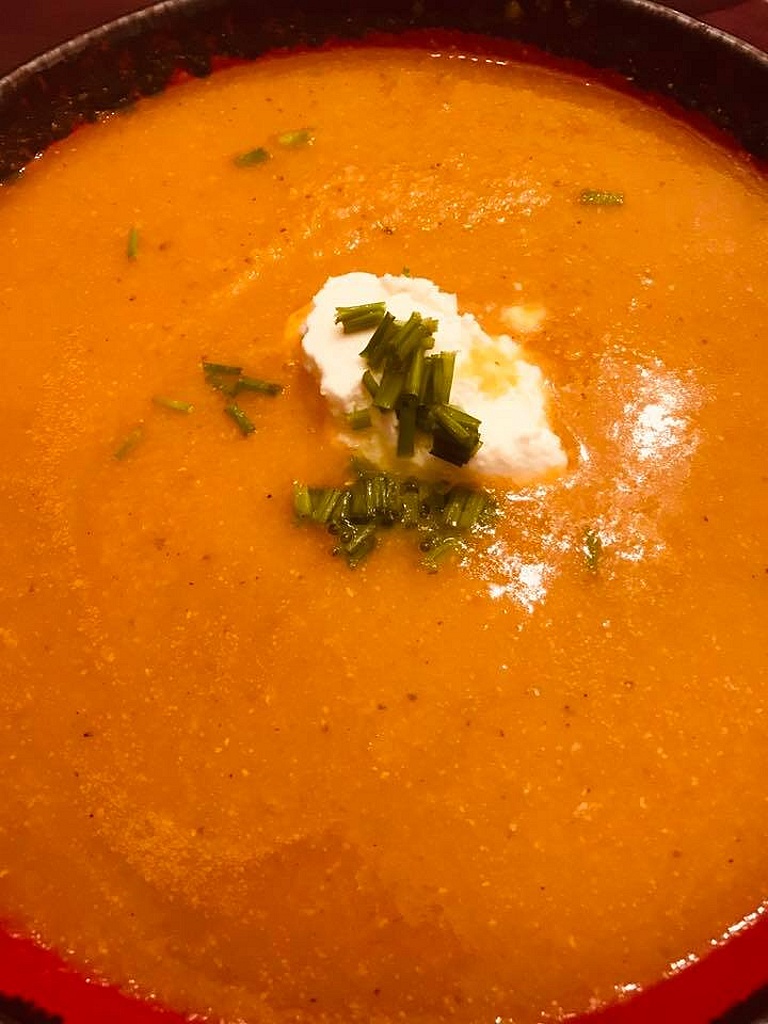 Vor dem Servieren mit Frischkäse und Schnittlauch garnieren.