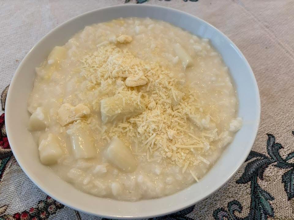 • Aufkochen, den Reis einrühren und ca. 20 Minuten sanft köcheln lassen, bis der Reis gar ist.