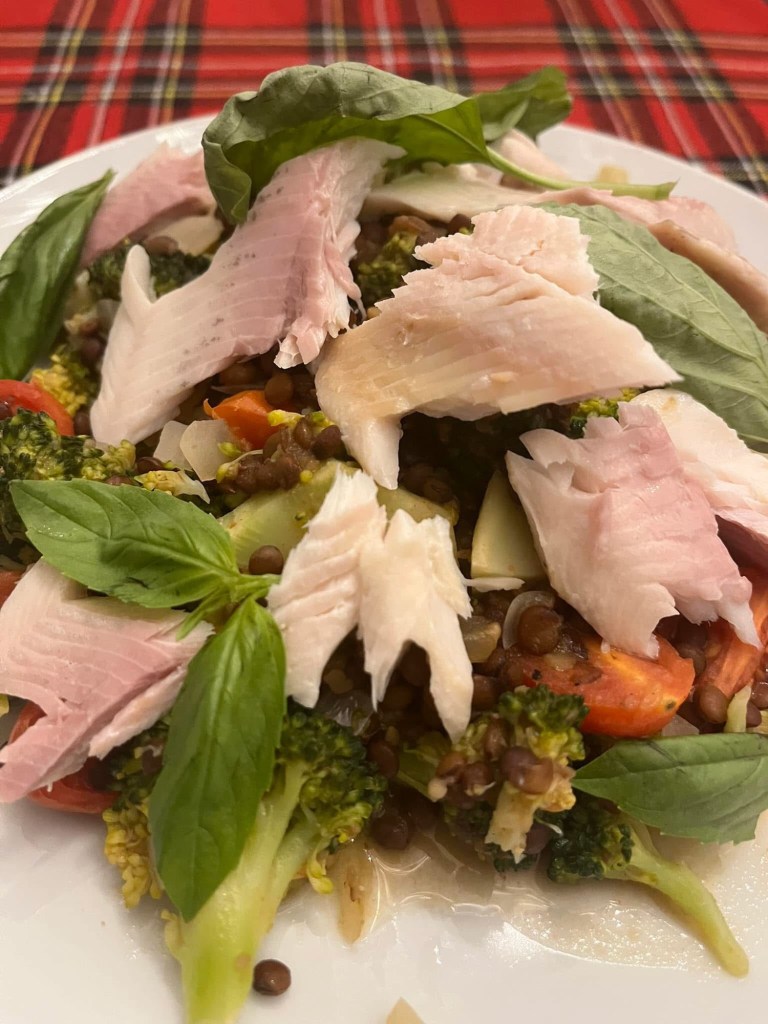 Den Linsensalat auf Tellern verteilen, Rucola locker darüber geben und die warmen Steakstreifen daraufsetzen. Nach Belieben noch etwas Dressing darüberträufeln.