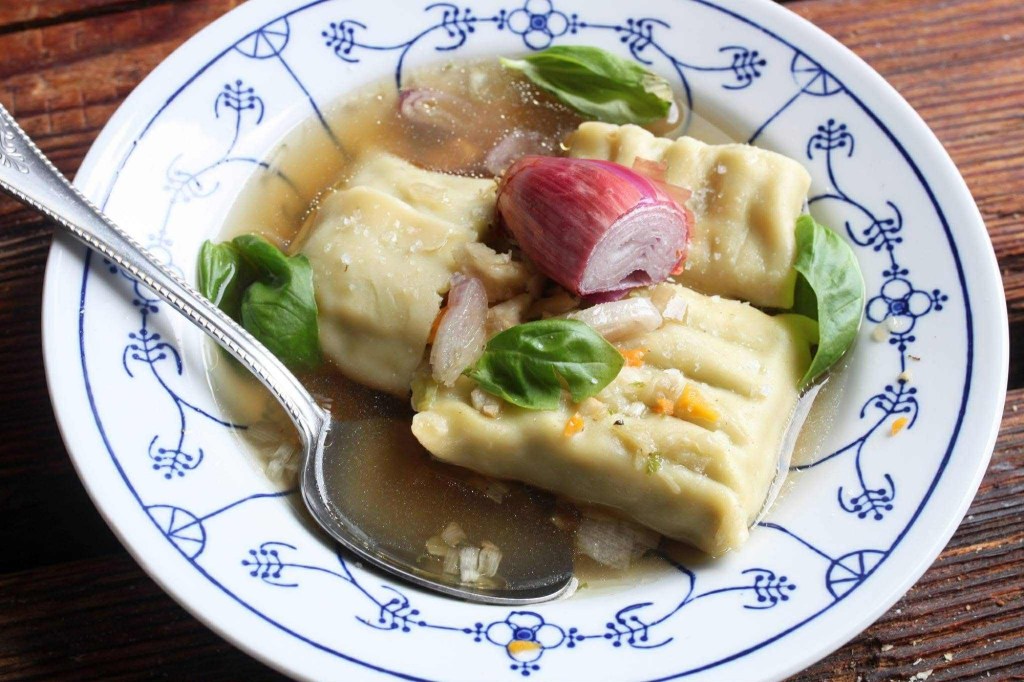 • Mit der Brühe auffüllen und ca. 20 Minuten köcheln, bis alles weich ist.