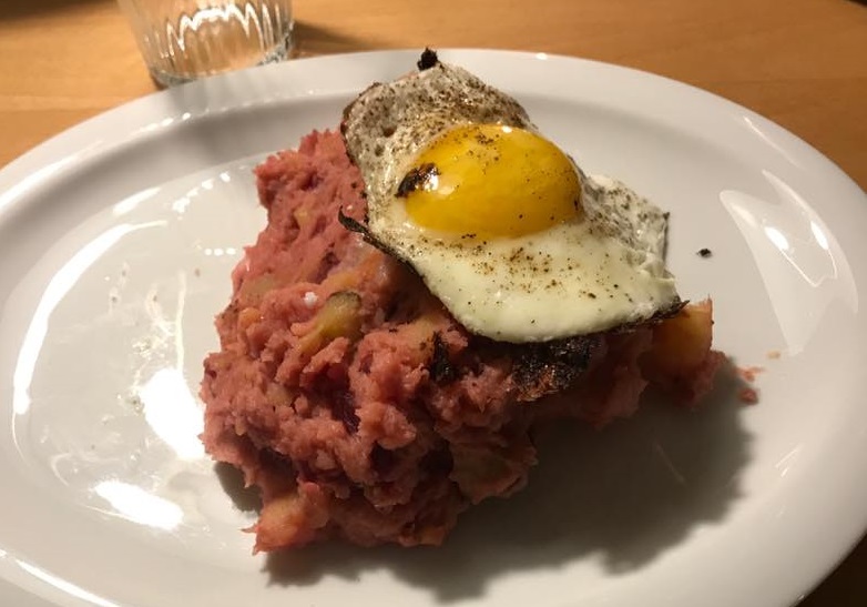 Dazu gibt es ein krosses Spiegelei und gerne auch mal Rollmops, ganz wie jeder mag.