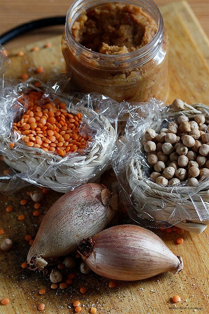 • 2 bis 4 Teelöffel Gewürze oder fein gehackte frische Kräuter, z. B. Chilipulver, Currypulver, Garam Masala, Kreuzkümmel, geräuchertes Paprikapulver, Rosmarin, Thymian oder andere Lieblingsgewürze und Kräuter