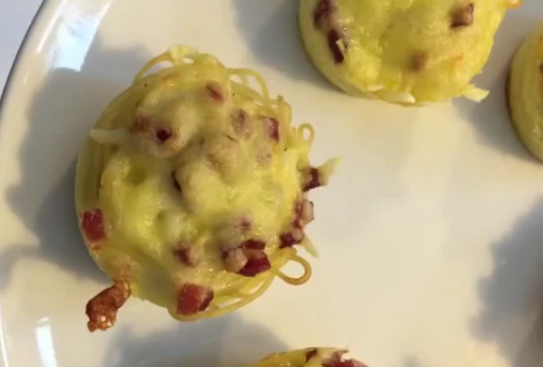 Die gekochten Spaghetti abtropfen lassen und in die Pfanne mit dem Rückenspeck geben, die Pfanne von der heißen Herdplatte nehmen. Spaghetti und Speck vermischen und jetzt die Eimischung dazugeben. Schnell verrühren, so dass das Ei nicht stockt, auf Teller geben und dann noch Parmesan darauf.